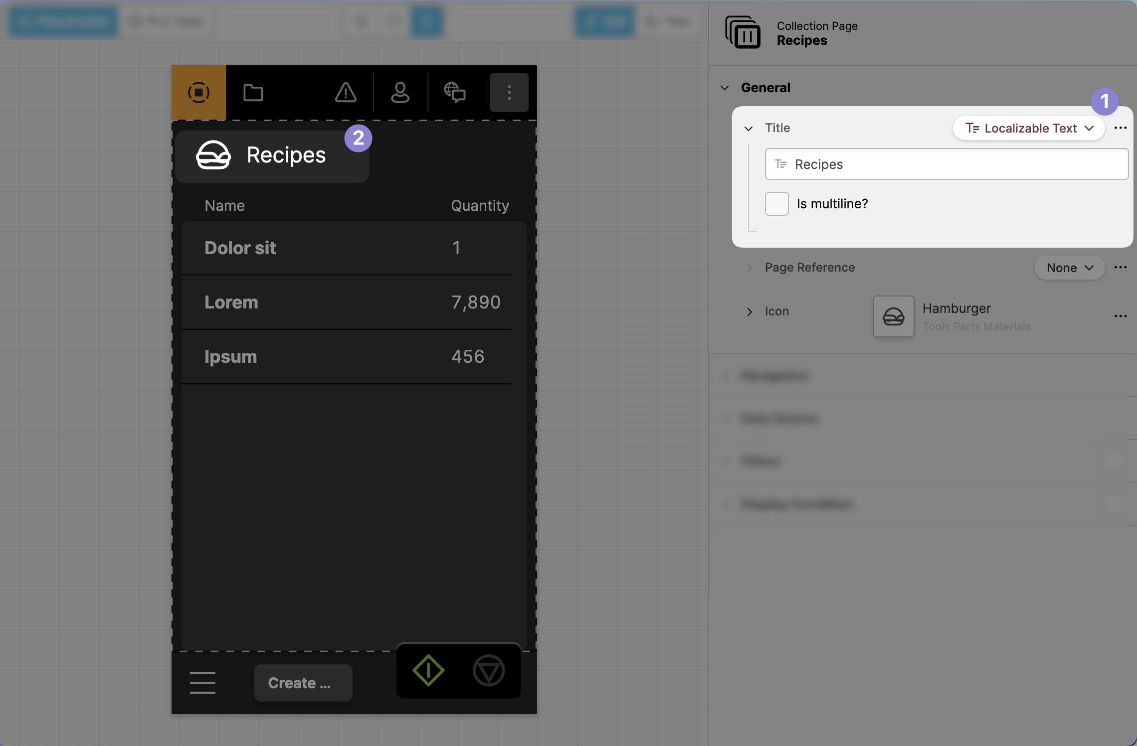 Data Variable, you are able to link it to a variable. In this case, we choose the variableRecipeCount. - In the preview, you can now see result of this change: the number of overall recipes is now being displayed instead.