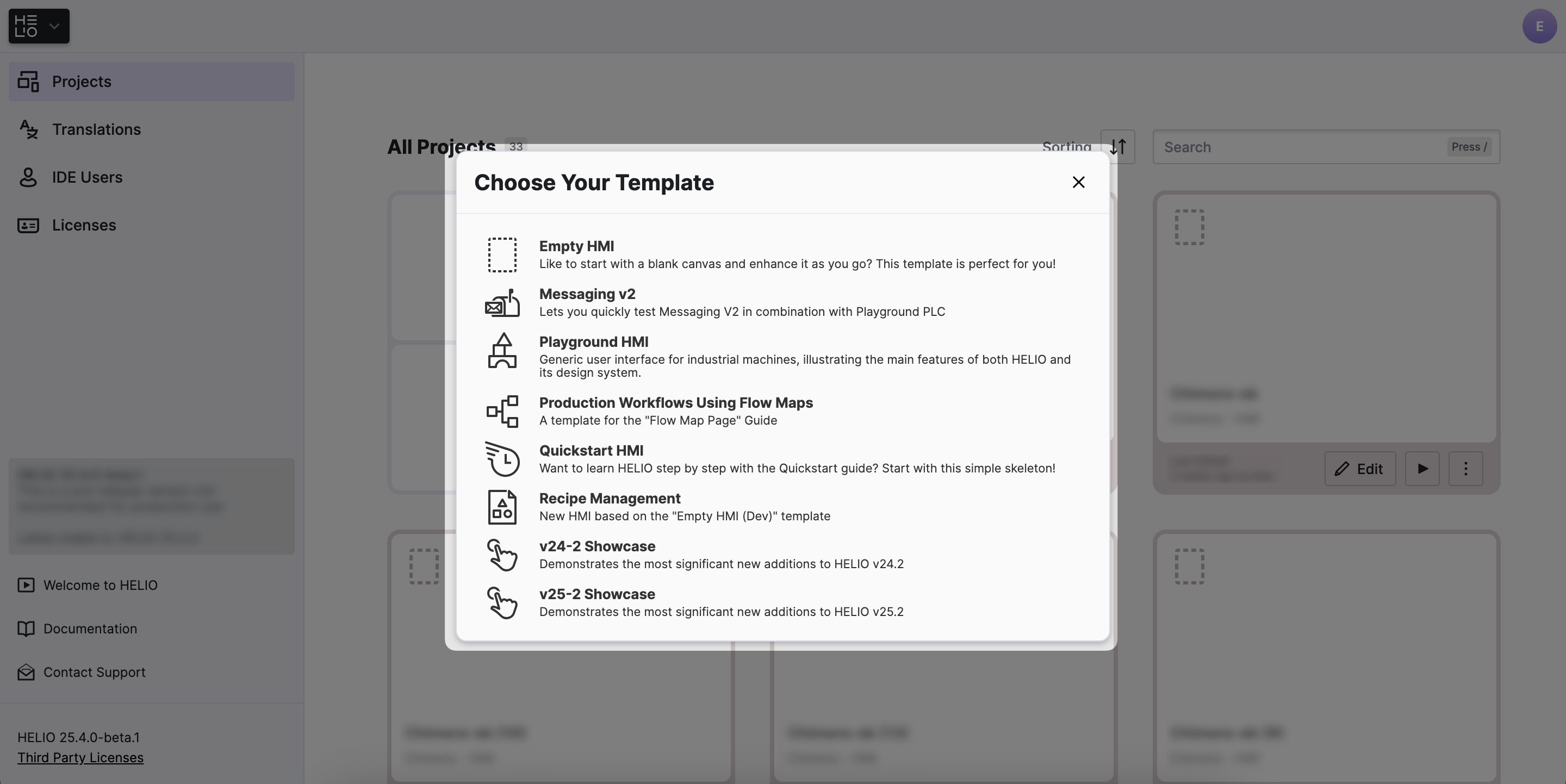 If you've already created projects, use the New Project button and choose the Playground HMI template.