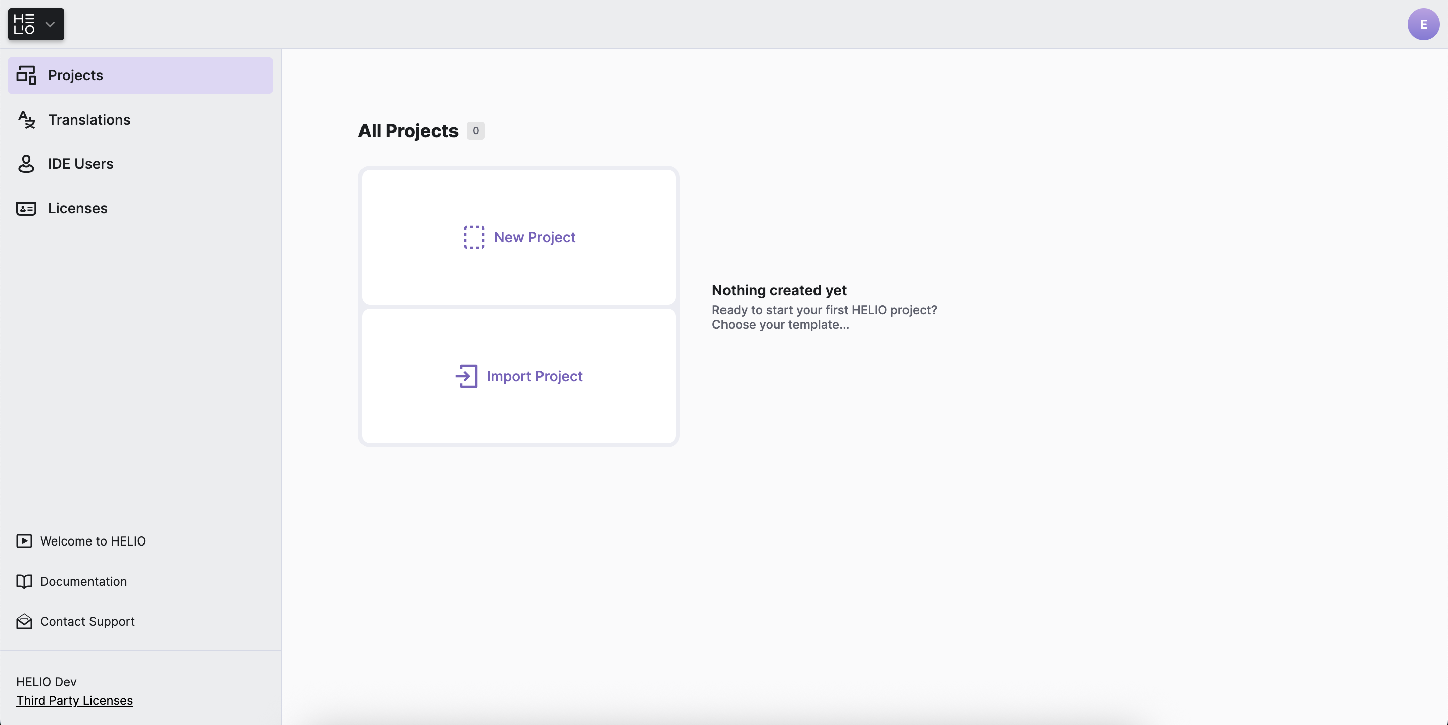 When you sign in for the first time there aren't any projects on your home page. HELIO therefore presents built-in templates to get you started.