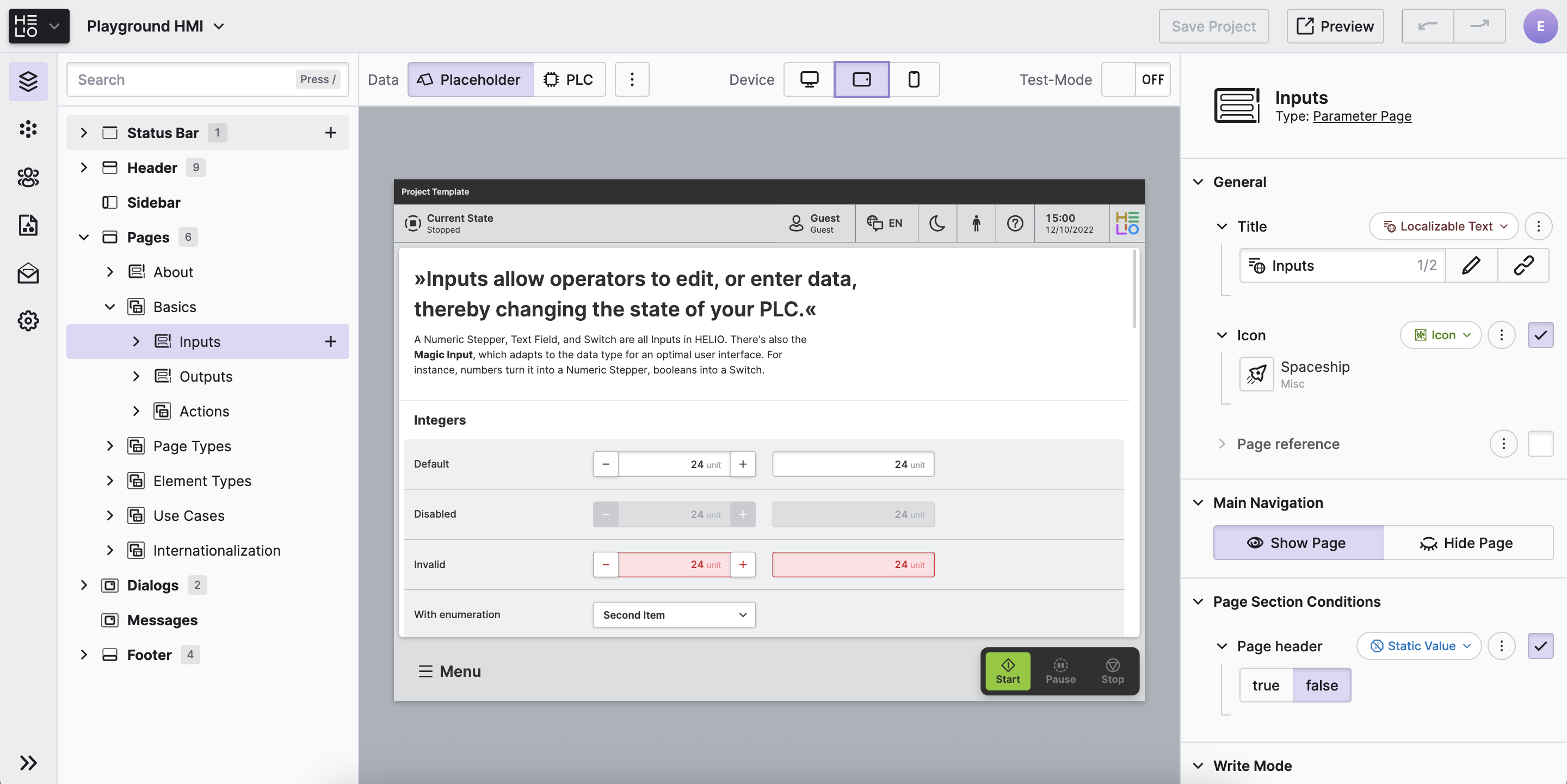 The Playground HMI provides an easy learning platform for the features of HELIO. Showcasing most of the built-in functionality, it serves as an inspiration, helping you discover all the possibilities with HELIO.