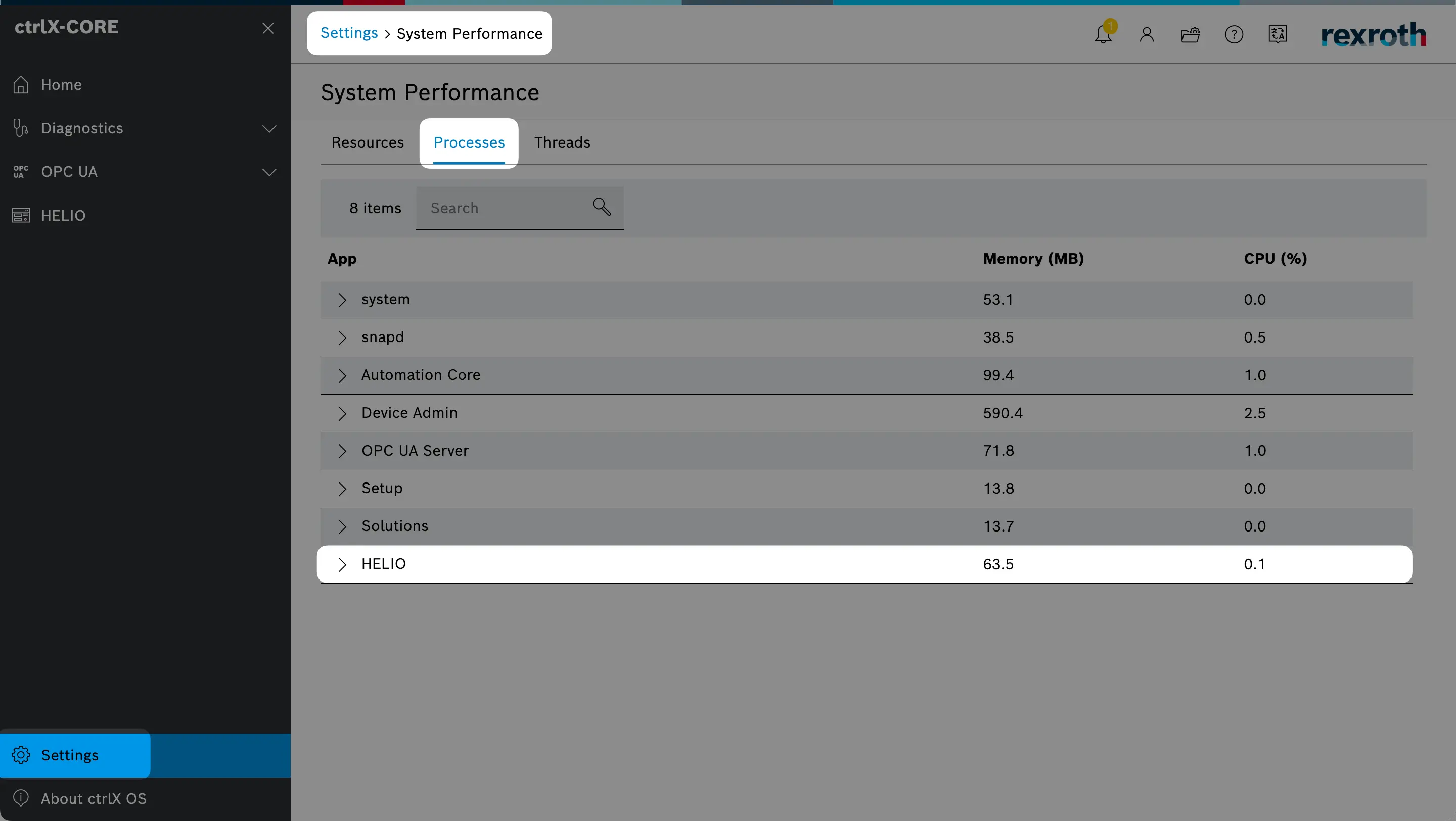 When installing the HELIO app on your ctrlX OS device, the operating system will make sure to automatically start HELIO for you.
