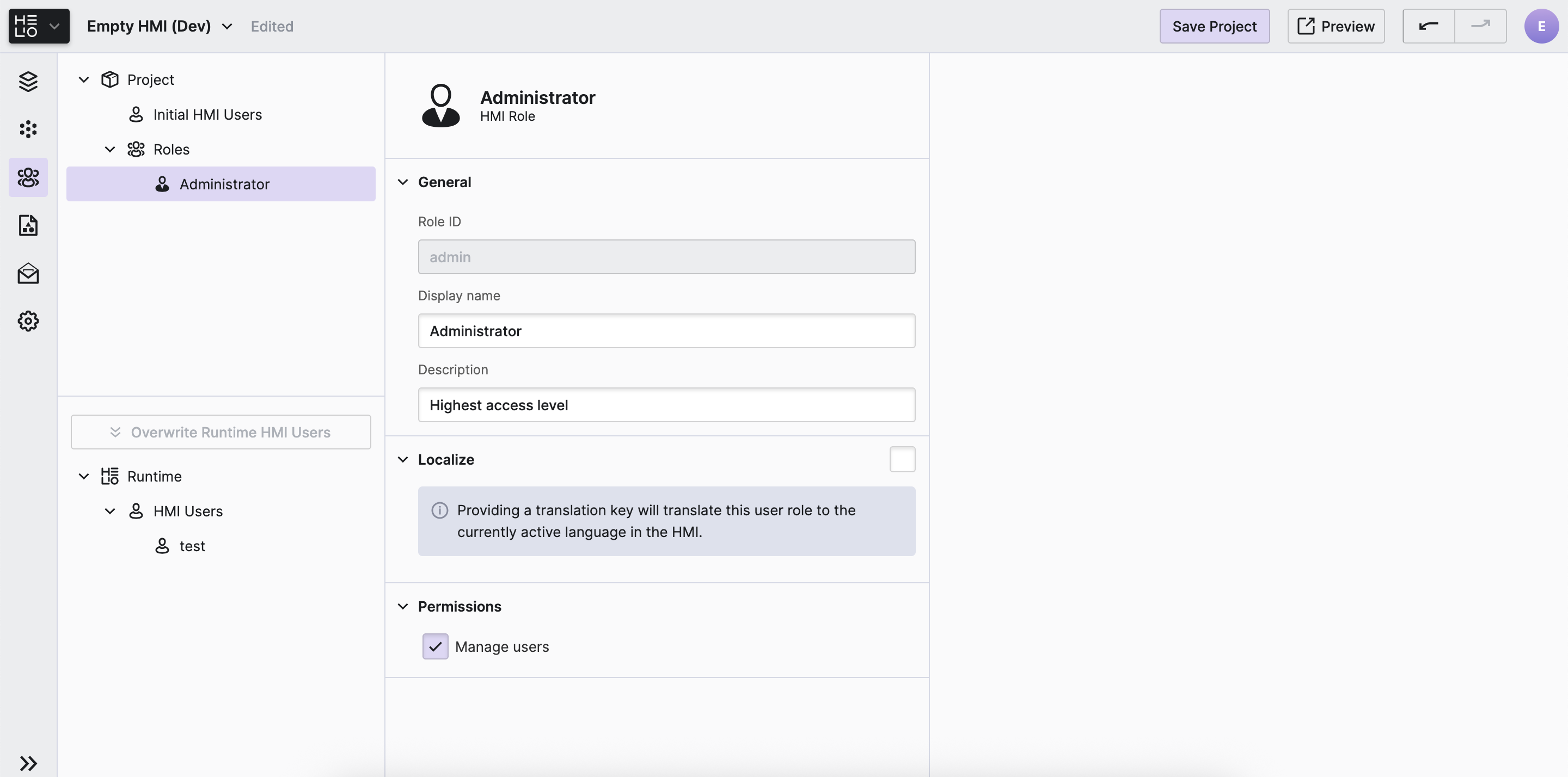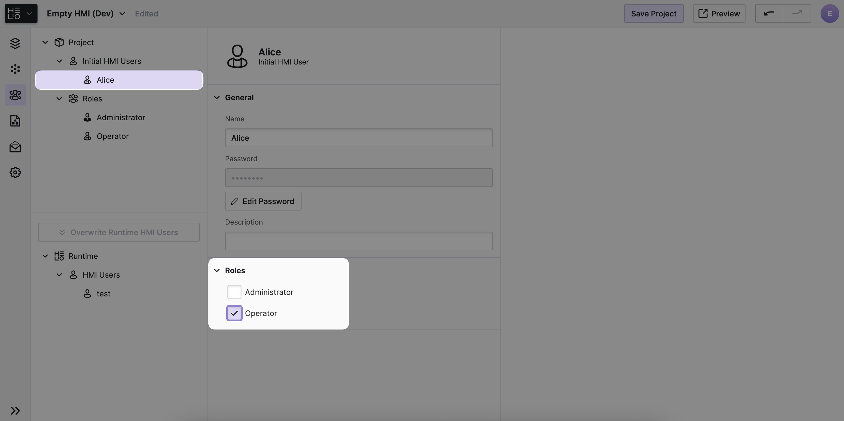 Fortunately, this isn't a significant issue. Simply click Overwrite Runtime HMI Users and confirm the resulting dialog to reset the