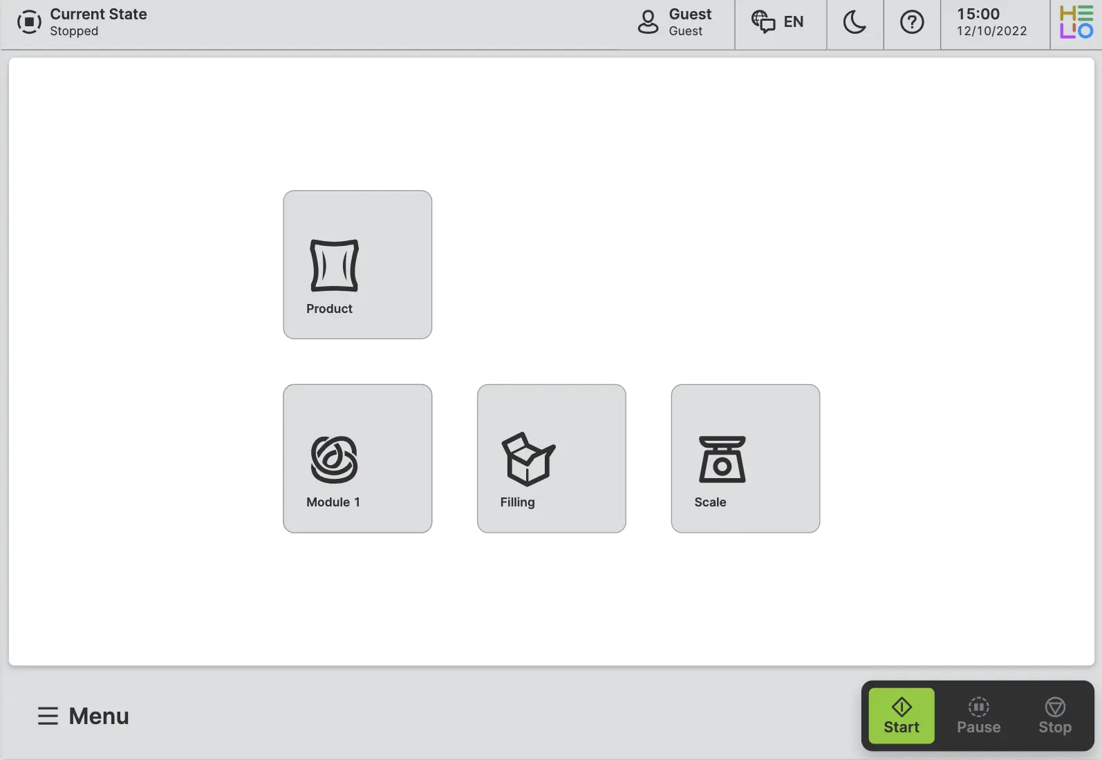 Switch to the Content View of the HELIO IDE and add a Flow Map Page to your HMI. HELIO will create a new page for you with three Flow Map Modules: