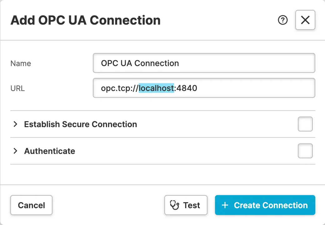 The OPC-UA Connection lets you connect HELIO to PLCs that comply with the