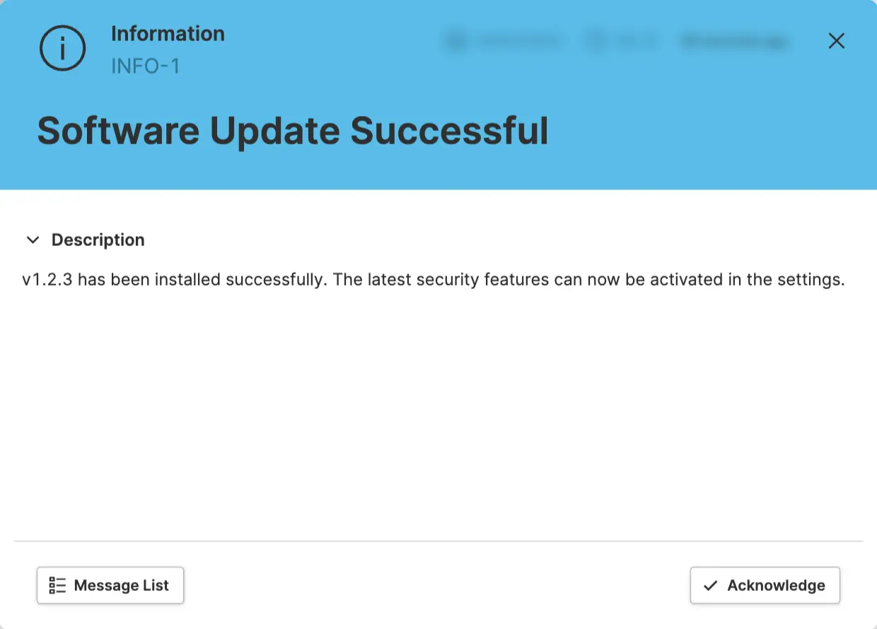 In this step, we're going to define an example message that informs operators about a successful software update.