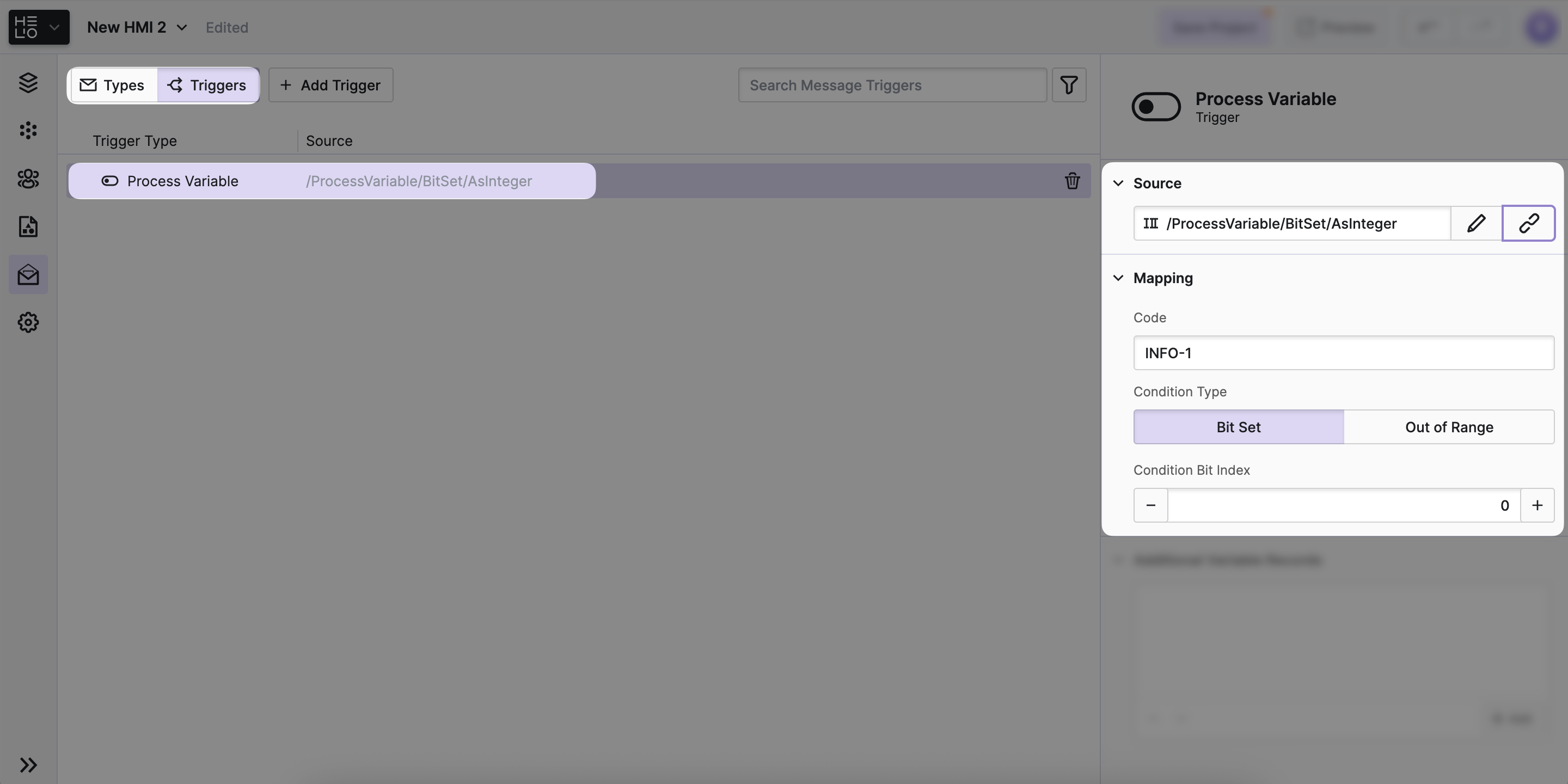 But often you just want to use a simple boolean logic to trigger messages. For example you might want to show a certain message when the PLC sets a certain switch and hide the messages as soon as the PLC resets the switch.Toggling messages like this is a piece of cake when using the bits of a variable.