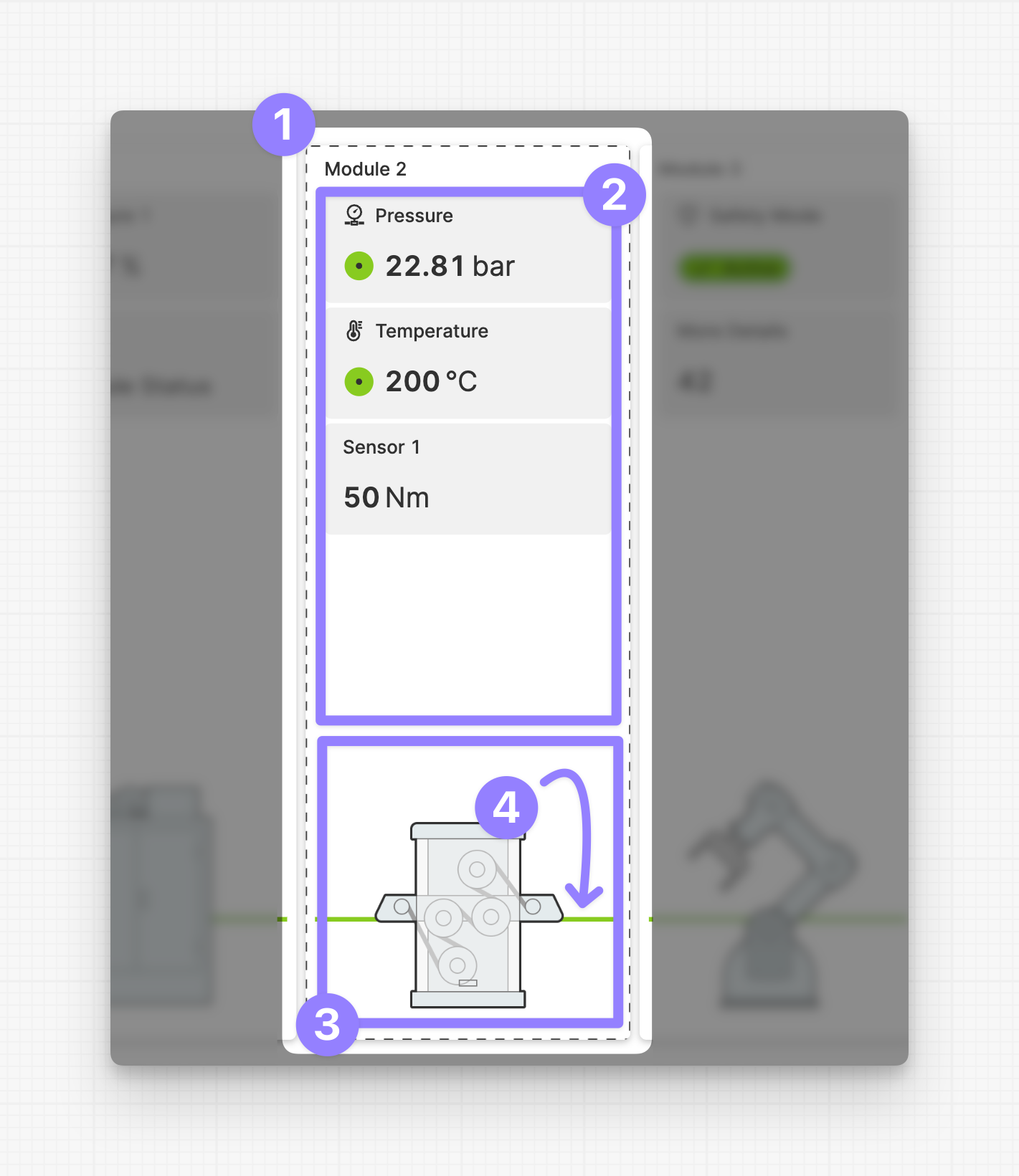 Adding interactive elements to a detailed view like this will only make it more visually cluttered. To simplify the view, highlight only the most important figures and statuses. Place any interactive elements on separate pages that can be shown as a layer over the main content using the Open Page as Overlay Action