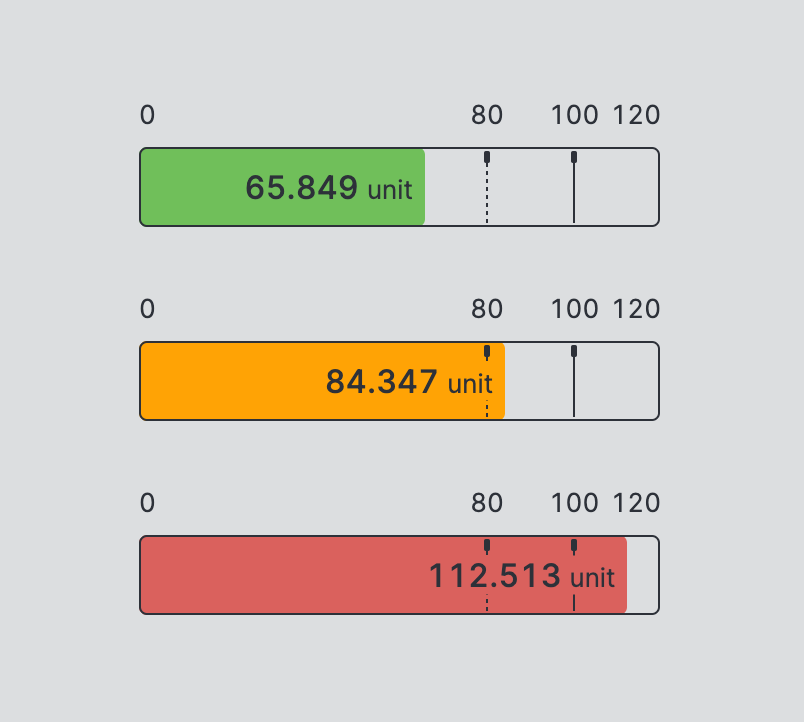 the current value, its range, and highlighting good, alarming, or critical