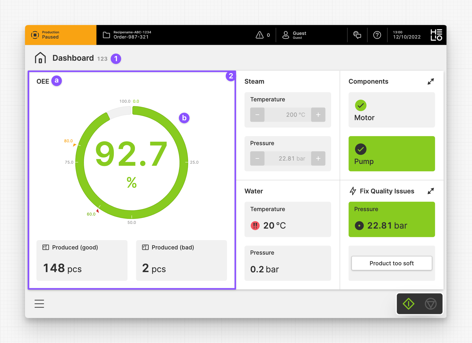 Dashboard Pagemostly provides key figures and states of the machine. - This overview allows users to monitor and manage the machine's performance and make informed decisions.