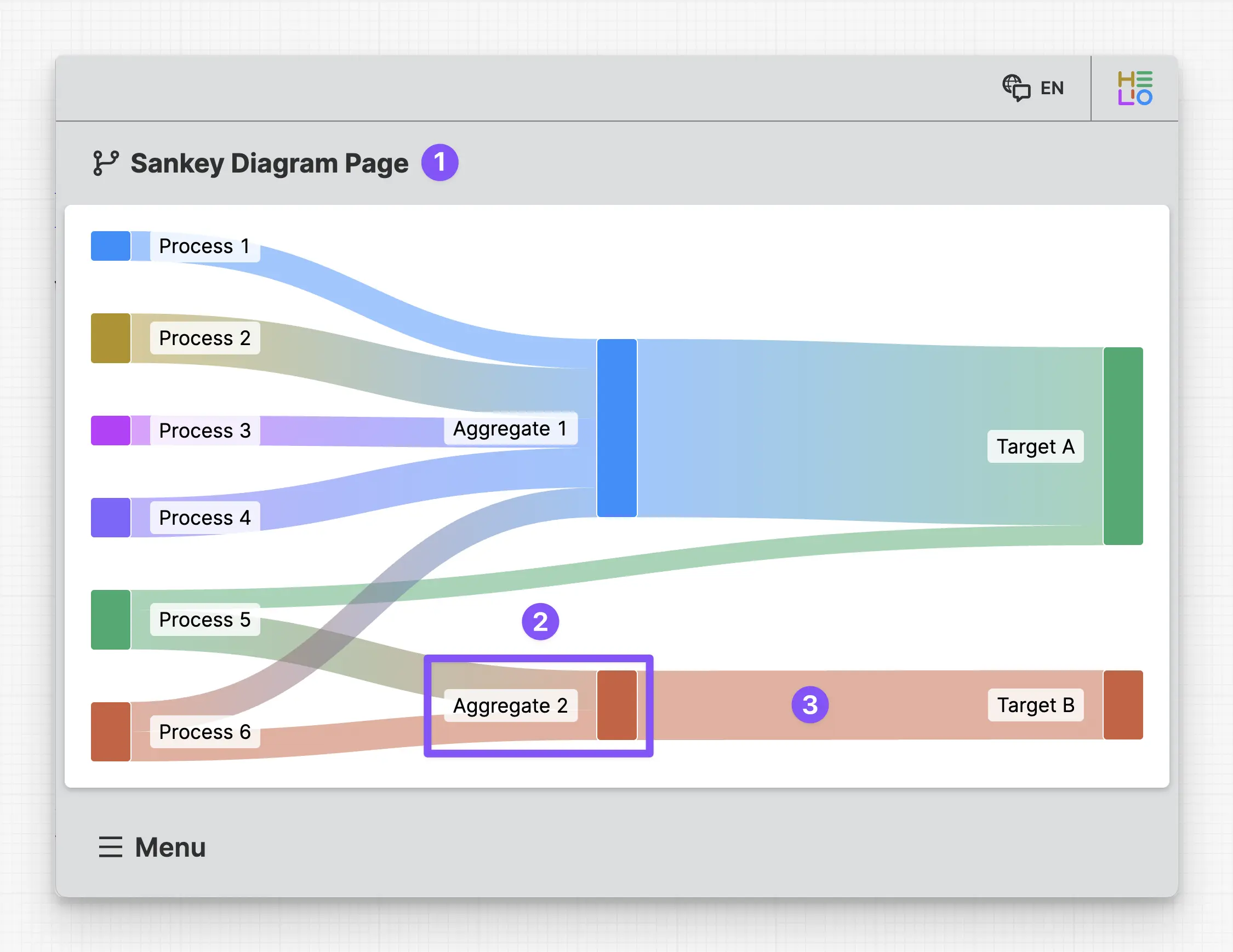 A Sankey Diagram Page displays flows between multiple nodes where link
