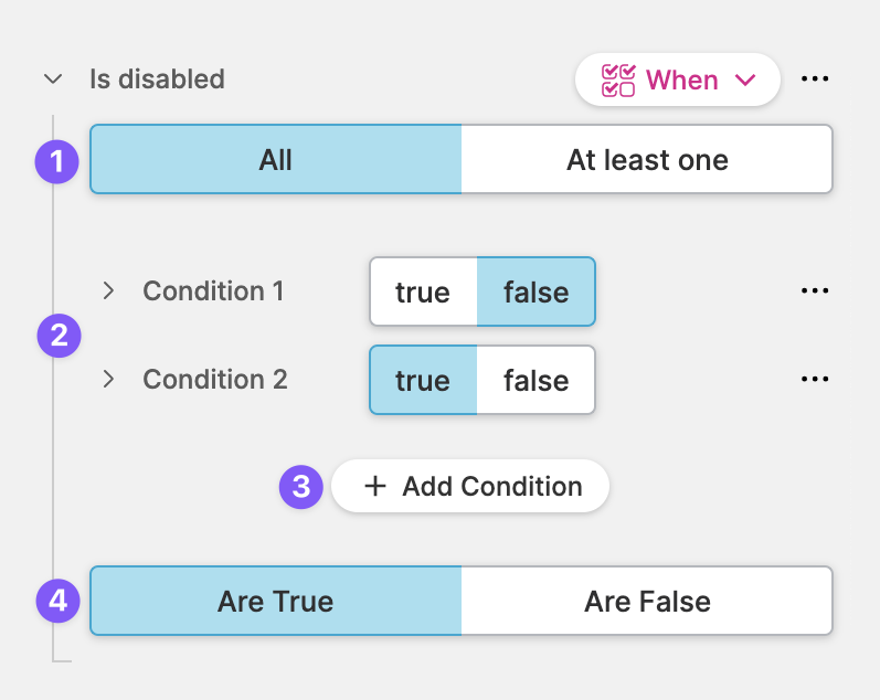 Select whether the condition(s) need(s) to be true or false.